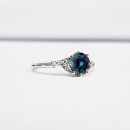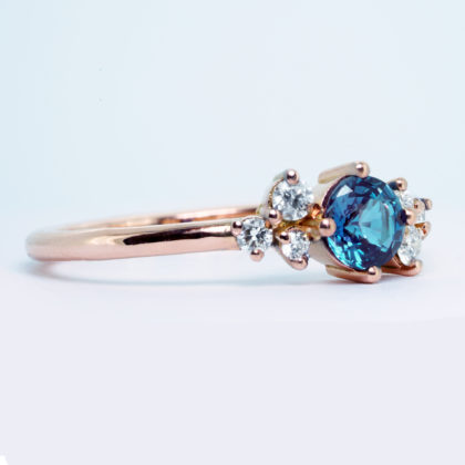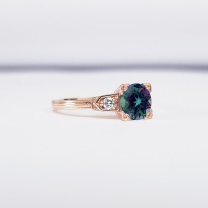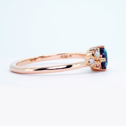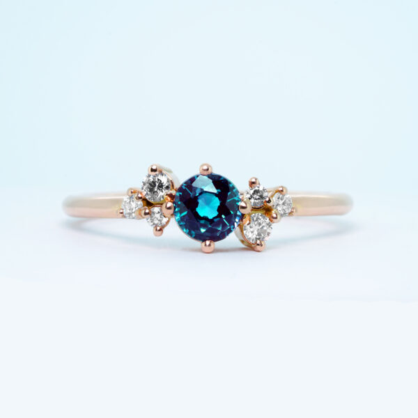 Colour change Alexandrite and diamond engagement ring handmade in rose/white/yellow gold or platinum