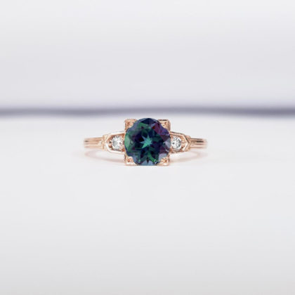 Alexandrite and diamond engagement ring handmade in white/yellow/rose gold or platinum antique 1920s art deco inspired