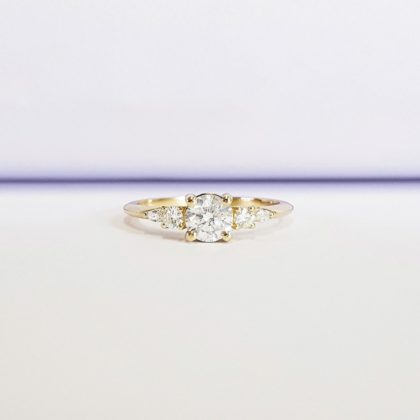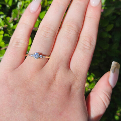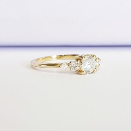 Engagement ring handmade in rose/white/yellow gold with Moissanite/White sapphire and diamond marquise 5 stone antique inspired