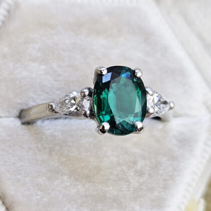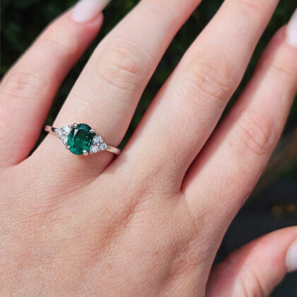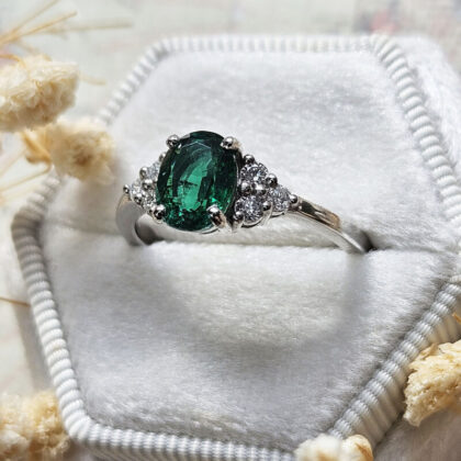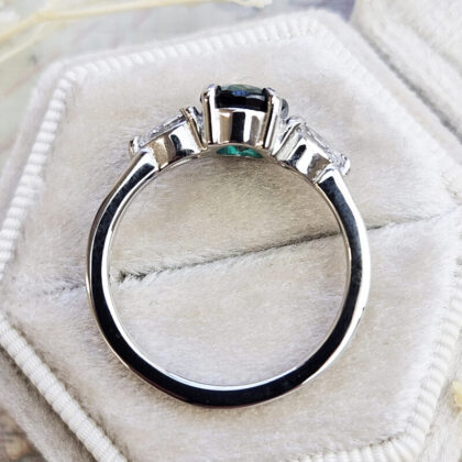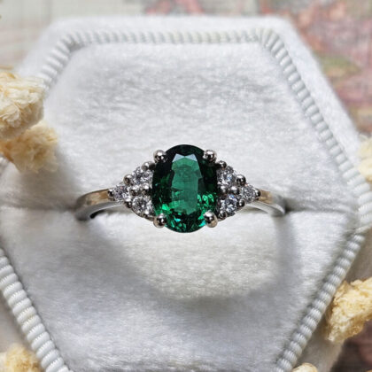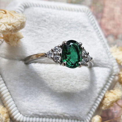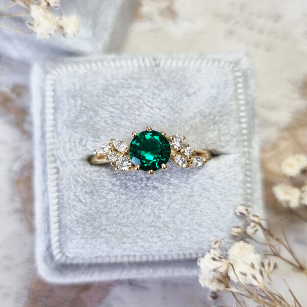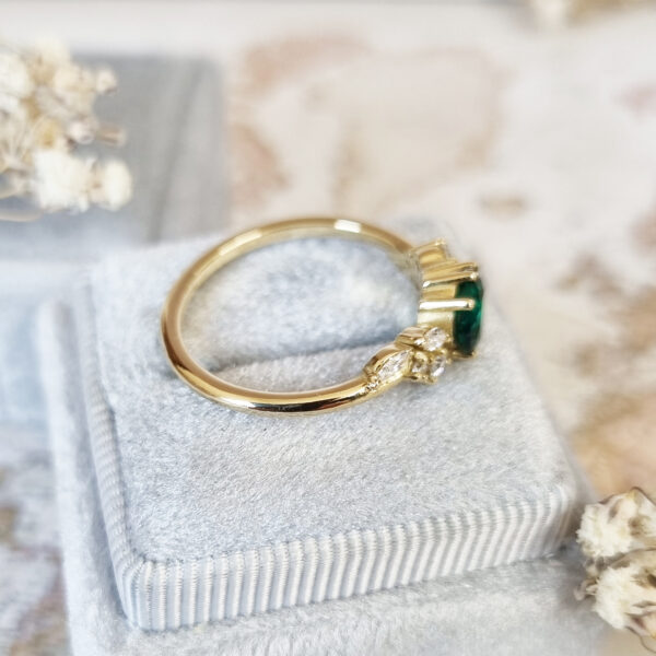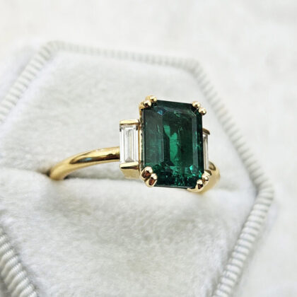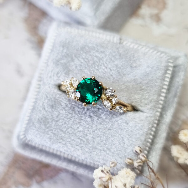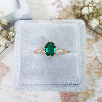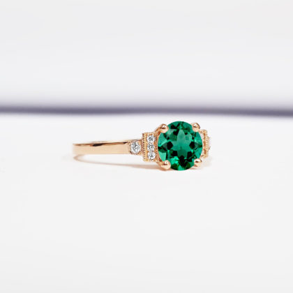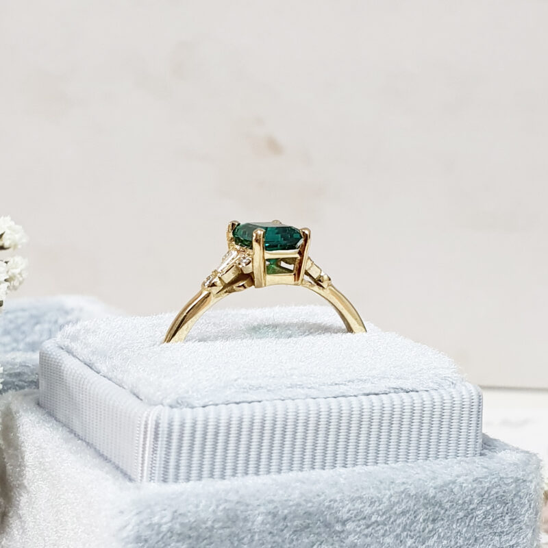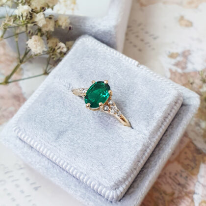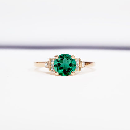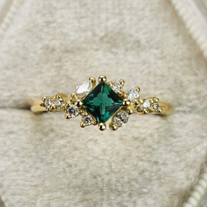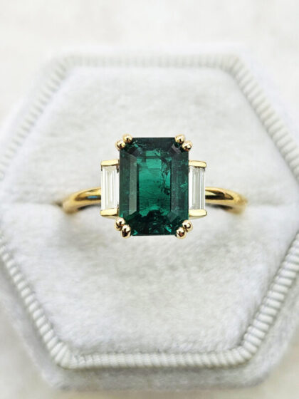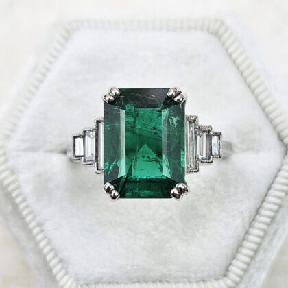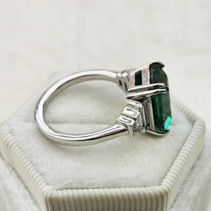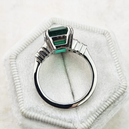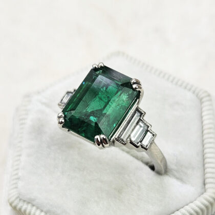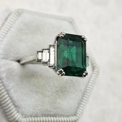 Emerald and diamond engagement ring handmade in white/yellow/rose gold or platinum antique 1920s art deco inspired