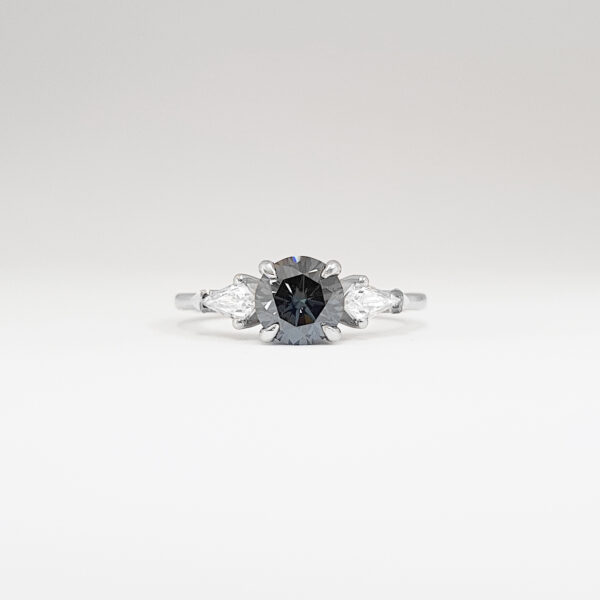 LIGHT BLUE MOISSANITE AND DIAMOND ENGAGEMENT RING