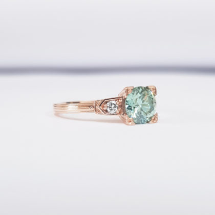 Mint sapphire and diamond engagement ring handmade in white/yellow/rose gold or platinum art deco inspired