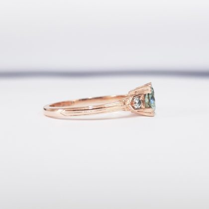 Teal moissanite and diamond engagement ring handmade in white/yellow/rose gold or platinum antique 1920s art deco inspired