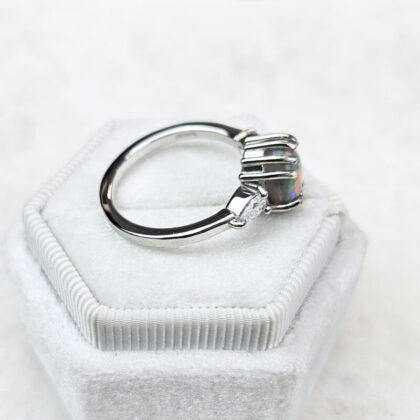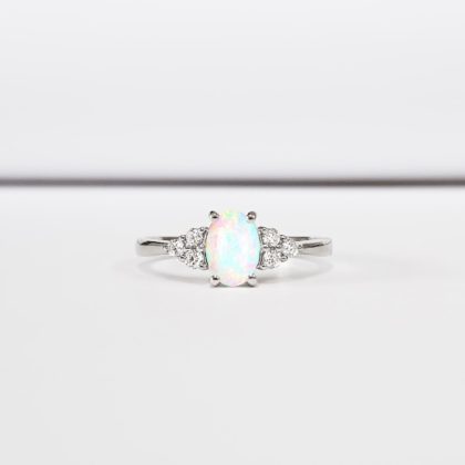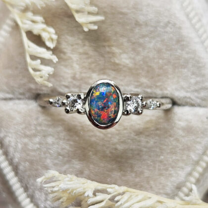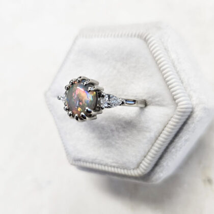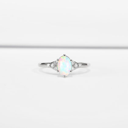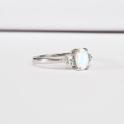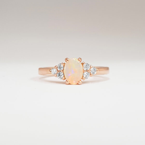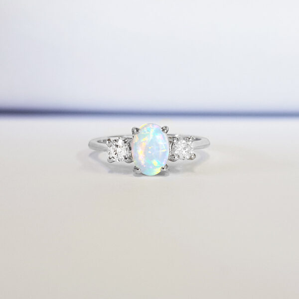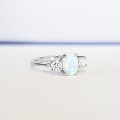 Opal and diamond oval engagement ring