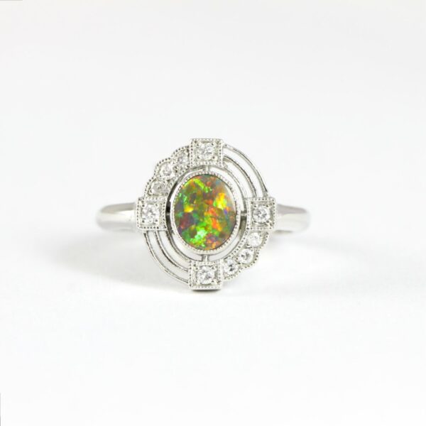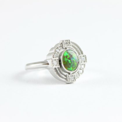 Opal and diamond art deco 1920’s inspired engagement ring