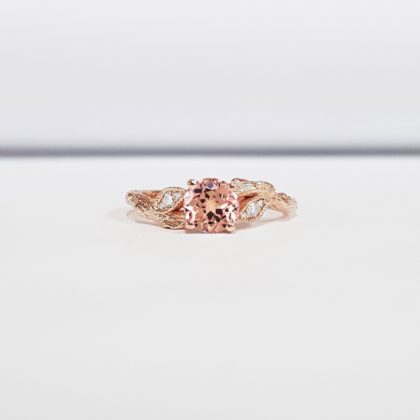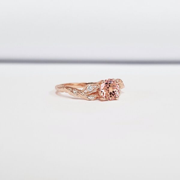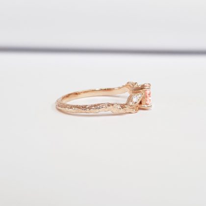 Champagne sapphire twig engagement ring with diamonds wood branch leaf leaves in white/rose/yellow gold or platinum handmade