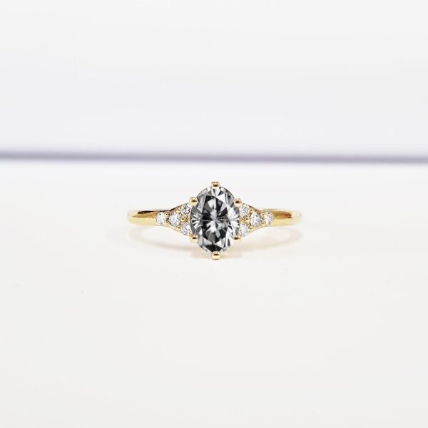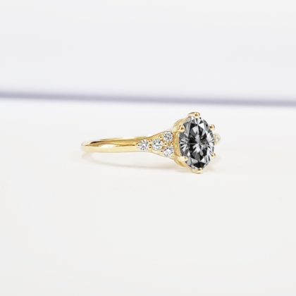 Grey Moissanite and diamond art deco 1920's inspired engraved engagement ring in yellow/rose/white gold or platinum