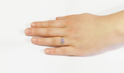 Lavender amethyst and diamond round engagement solitaire nature inspired leaf floral ring in gold or platinum handmade for her UK