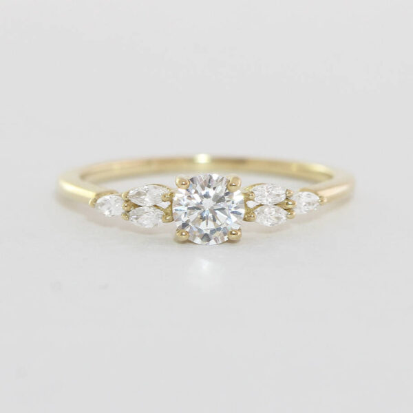 Moissanite and marquise Diamond engagement ring handmade in white/yellow/rose gold cluster delicate petite thin band