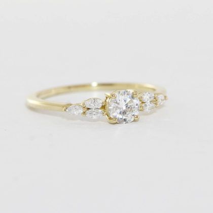 Marquise Diamond engagement ring handmade in white/yellow/rose gold cluster delicate petite thin band
