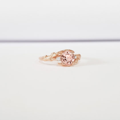 Leaf engagement ring with lab grown champagne sapphire and diamond nature wood branch leaves in white/rose/yellow gold or platinum handmade