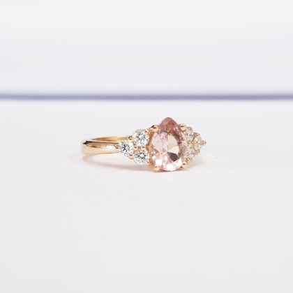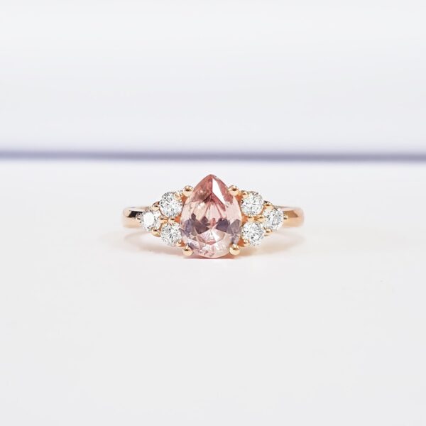 Pear cut champagne sapphire and diamond engagement ring in rose/white/yellow gold or platinum