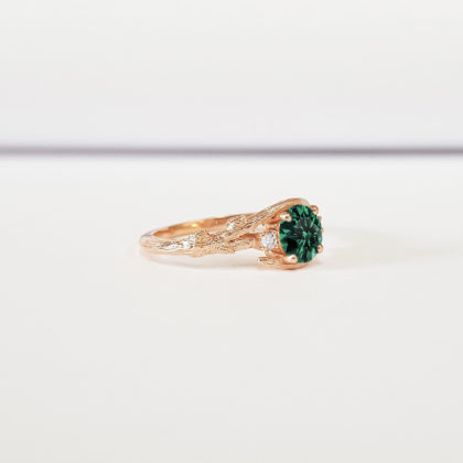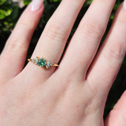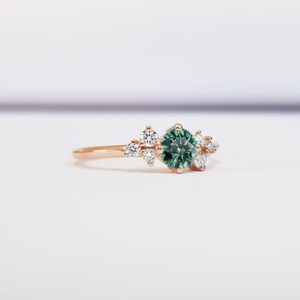 Lab grown green sapphire and diamond unique engagement ring in white/yellow/rose gold or platinum handmade
