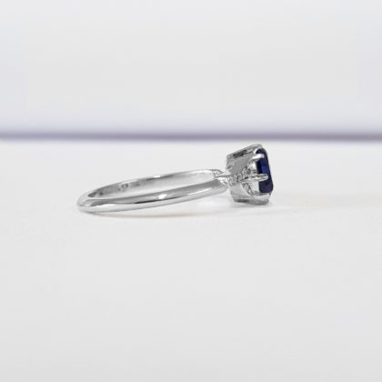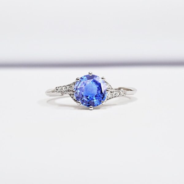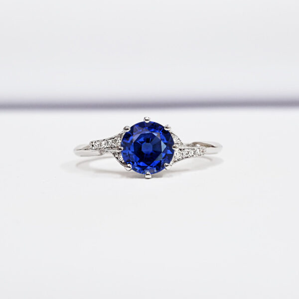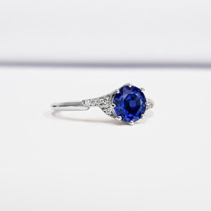 Sapphire and diamond engagement ring handmade in white/rose/yellow gold or platinum antique edwardian inspired mount