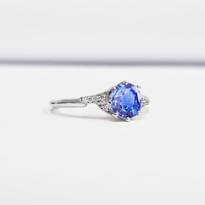 Light blue sapphire and diamond unique engagement ring in white/yellow/rose gold or platinum handmade