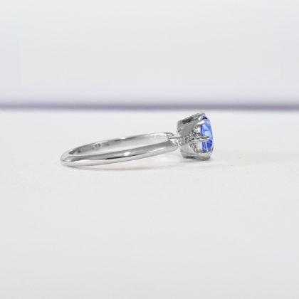 Light blue sapphire and diamond engagement ring handmade in white/rose/yellow gold or platinum antique edwardian inspired mount