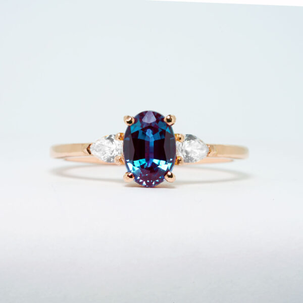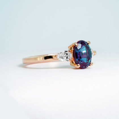 Alexandrite and diamond cluster engagement ring in white/rose/yellow gold or platinum