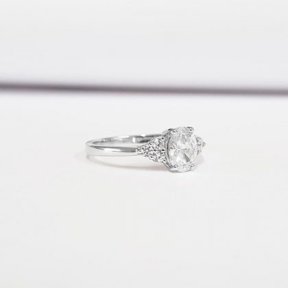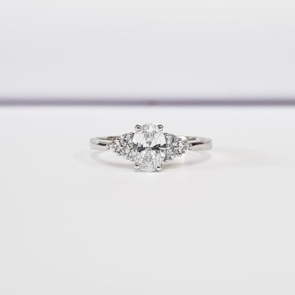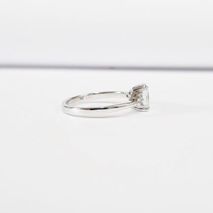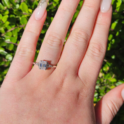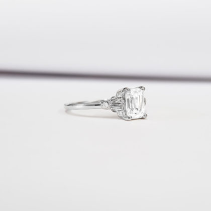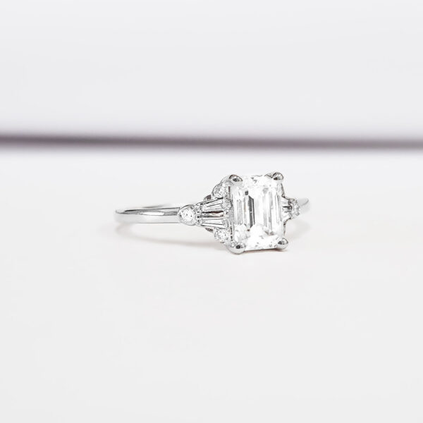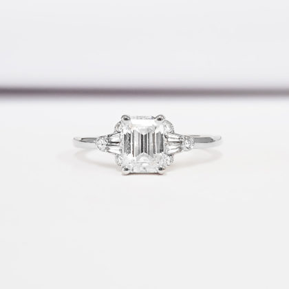 Moissanite and diamond emerald cut engagement ring in white/rose/yellow gold or platinum for her handmade ring UK