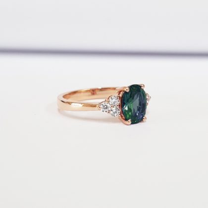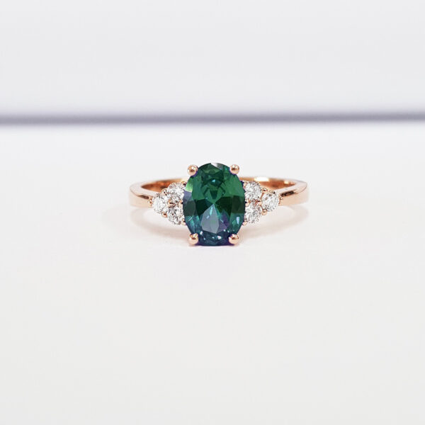 Colour change Alexandrite and diamond engagement ring handmade in rose/white/yellow gold or platinum