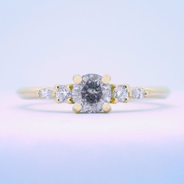 Salt and pepper diamond engagement 5 stone ring in rose/white/yellow gold handmade for her