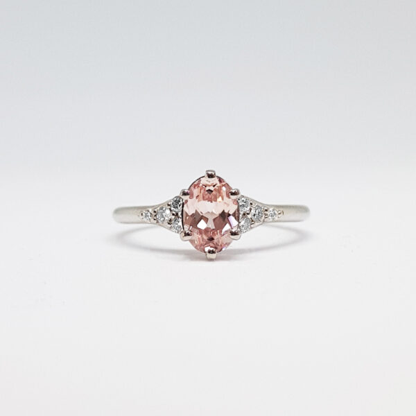 Moonstone and Diamond oval engagement ring in white/rose/yellow gold for her handmade ring UK