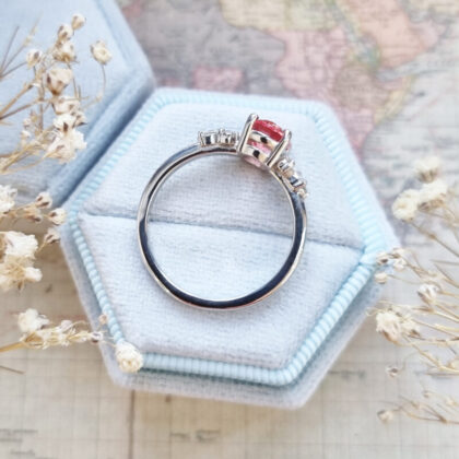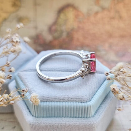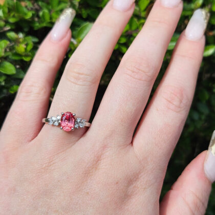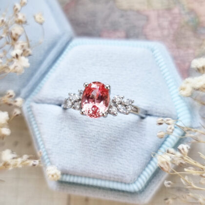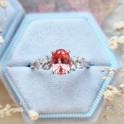 Padparadscha sapphire and diamond engagement ring handmade in yellow/rose/white gold or platinum floral leaf inspired
