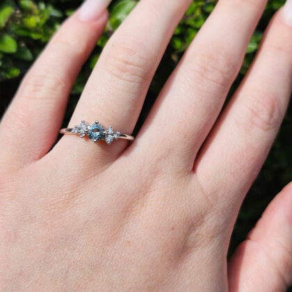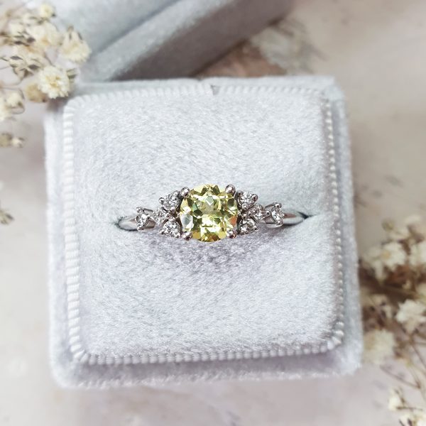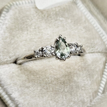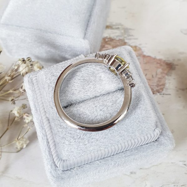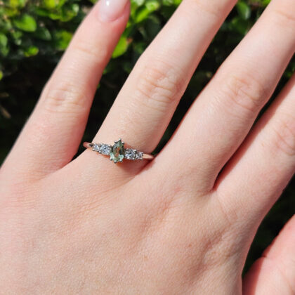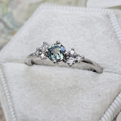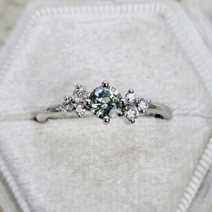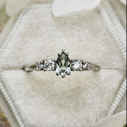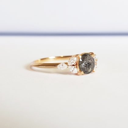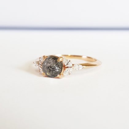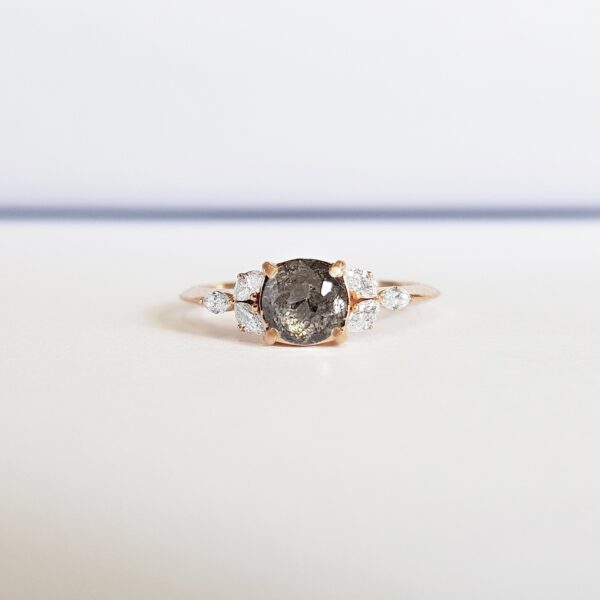 Salt and pepper rose cut diamond engagement ring with marquise accent nature inspired leaf shape ring in gold or platinum