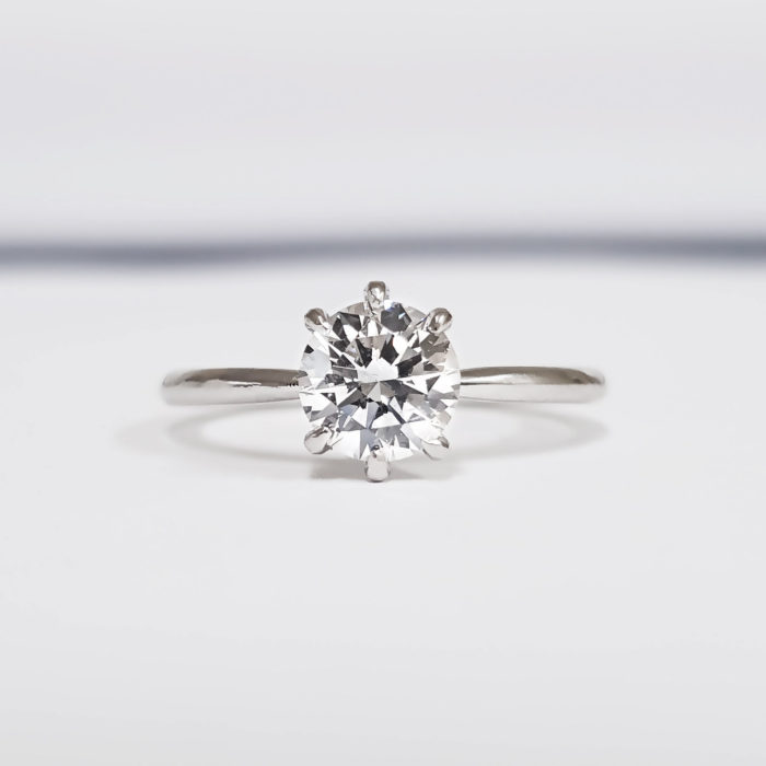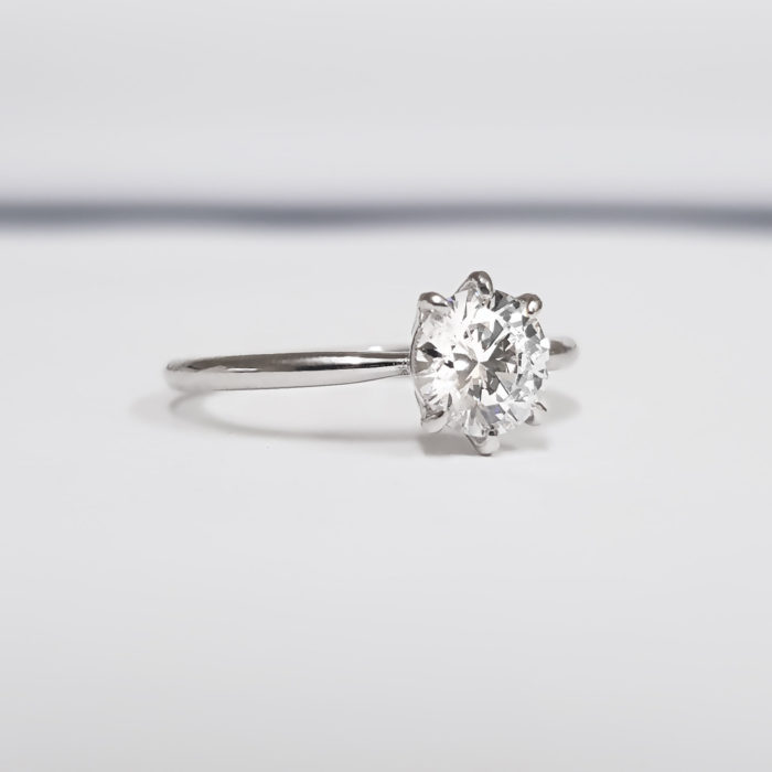 Center Diamond: 1 carat, E colour, VS1 clarity, with certification (this is the minimum size and quality, if the diamond is sourced at a higher size/quality then no extra charge will be added)