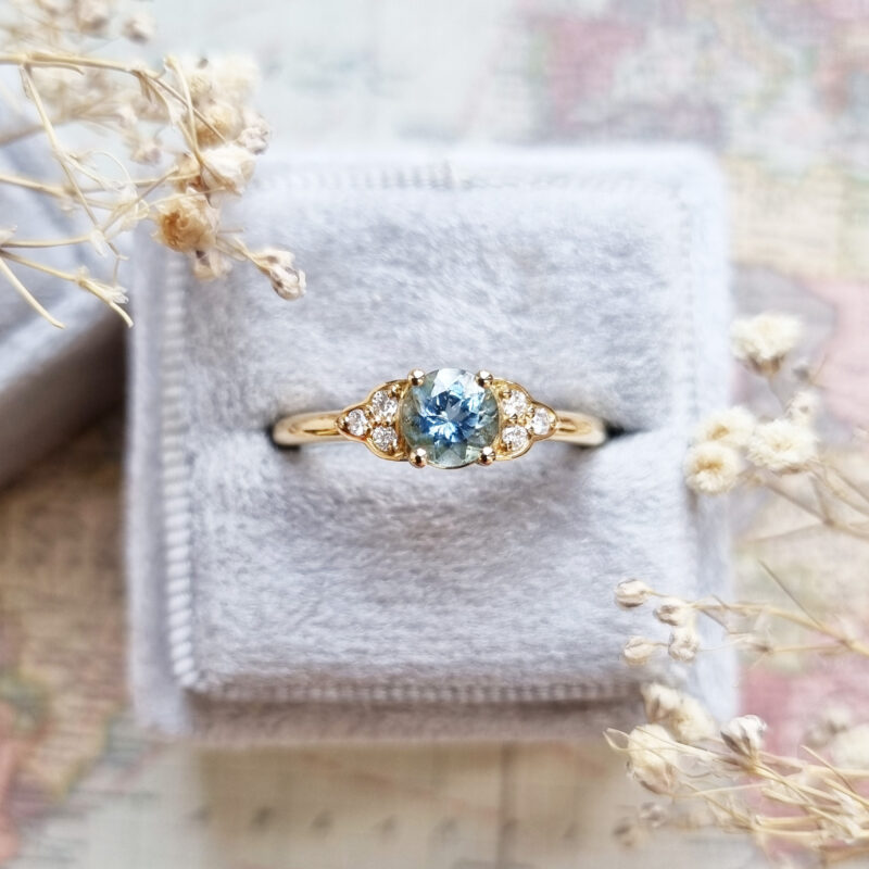 Center Aquamarine: 5 mm, VS clarity, medium-strong blue, AAAA quality