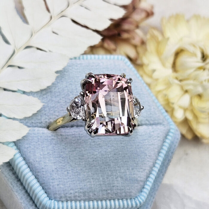 Central Tourmaline: 9.72ct, elongated cushion cut, 13.1×10.1mm, VS clarity, pink and very light blue