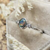 This brand new ring features a breathtaking natural Australian black Opal. It has been bezel set for maximum protection and is flanked by round brilliant and marquise cut white diamonds, in our 5 stone platinum low profile setting!