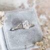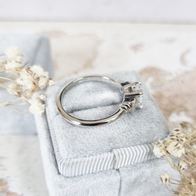 Center Diamond: cushion cut, 1ct carat, E colour, VS1 clarity, (this is the minimum size and quality, if the diamond is sourced at a higher size/quality then no extra charge will be added)