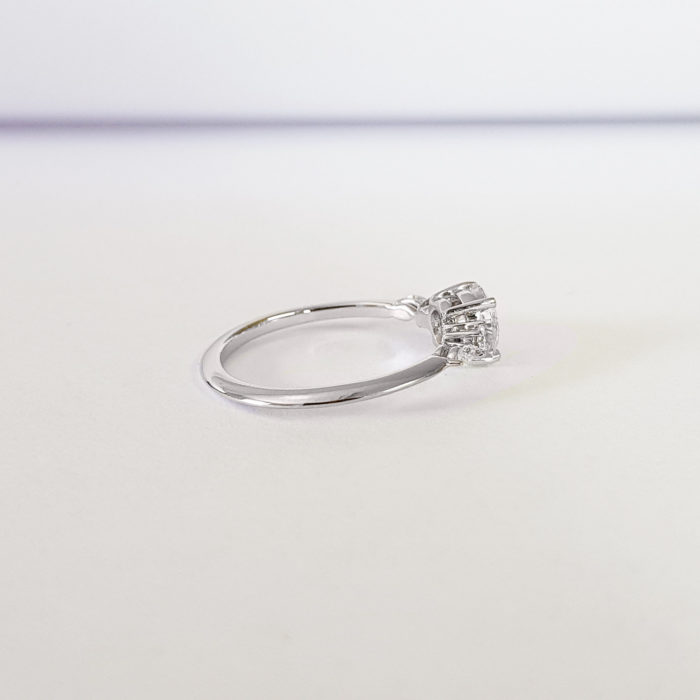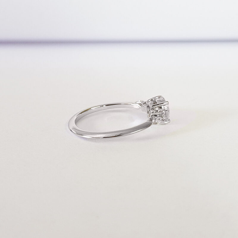 Center stone: 0.8 carats, 6 mm diameter, E/F colour, VVS