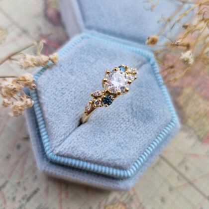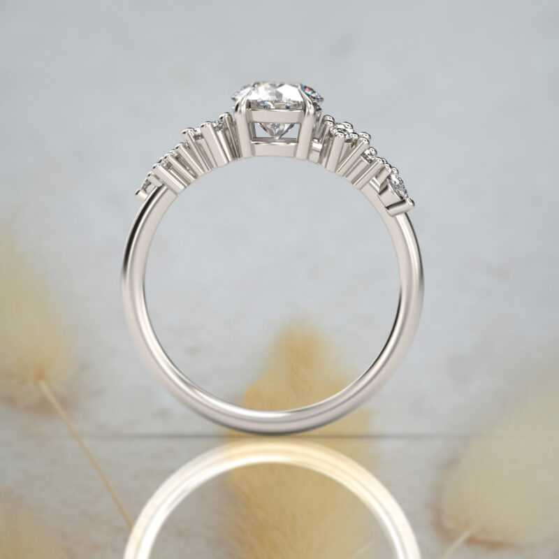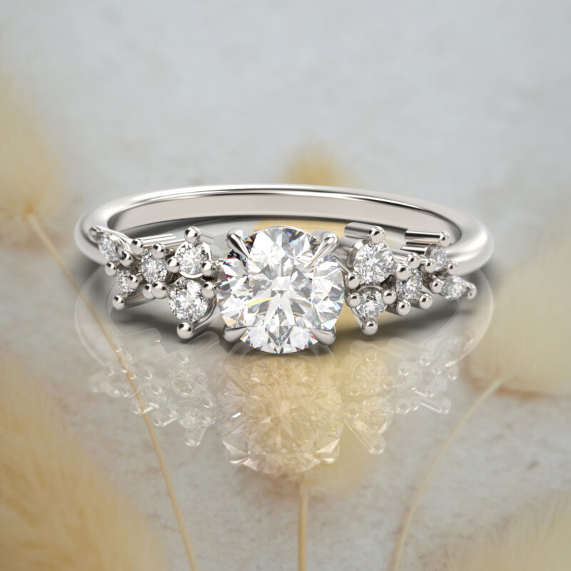 Central lab grown diamond: 1ct, round cut, E colour, VS1 clarity, IGI certification (this is the minimum size and quality, if the diamond is sourced at a higher size/quality then no extra charge will be added)