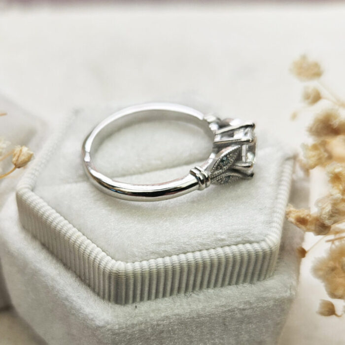 Side Diamonds: 1.3 mm diameter each, 0.04 carats total, VS clarity, aqua blue colour