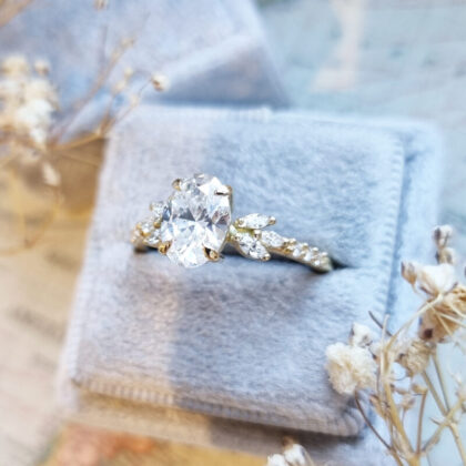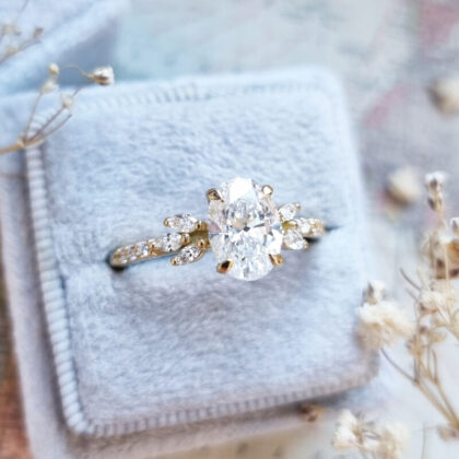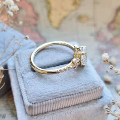 Accent lab diamonds: 0.26ctw, E/F colour, VVS clarity