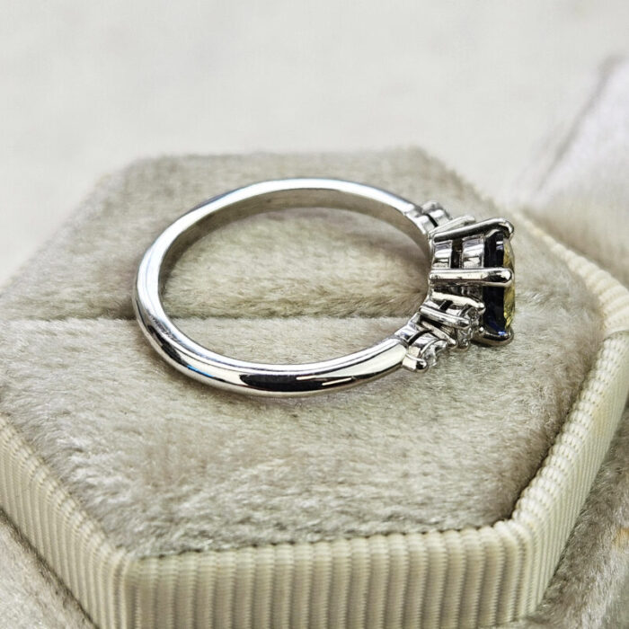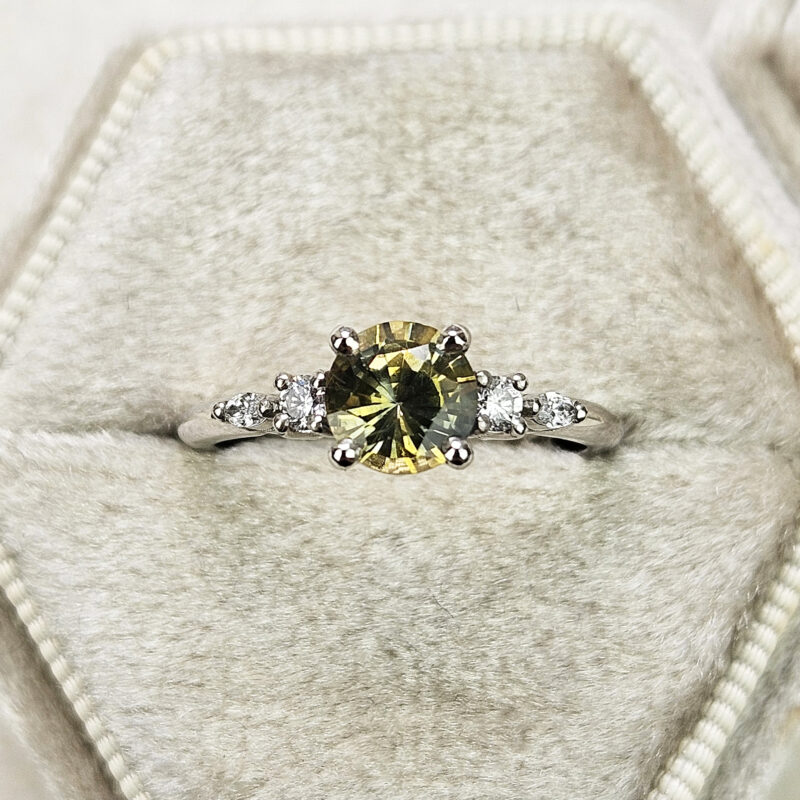 Centre Sapphire: 1.08ct, round cut, 5.99×5.93×3.96mm, green/yellow, VS clarity, certified