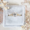 This brand new ring features a central 1 carat, E colour, VS1 clarity lab grown round brilliant cut diamond. It has been set in a beautiful floral inspired, low profile 18ct yellow gold mount!