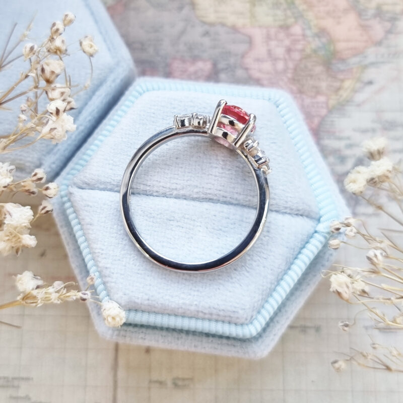Central lab grown sapphire: 8x6mm, oval cut, pink-orange, VVS clarity