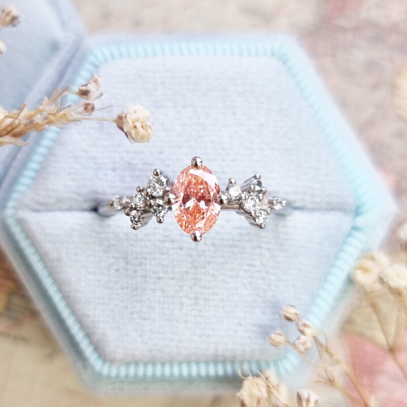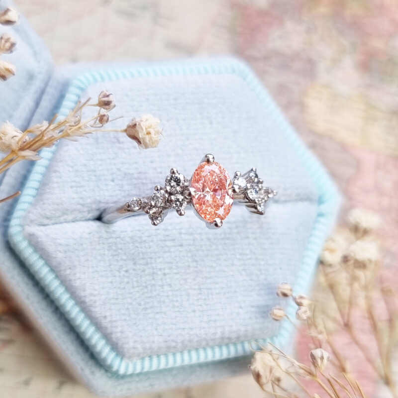 Center lab grown Diamond: 0.55ct, oval cut, Fancy vivid pink, VVS2 clarity, IGI certificate no. LG517221394