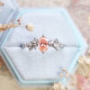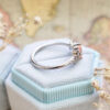 This brand new stunning one-off ring features a central 0.55 carat brilliant cut fancy vivid pink lab grown diamond, flanked by white lab grown diamonds, in a floral platinum mount!