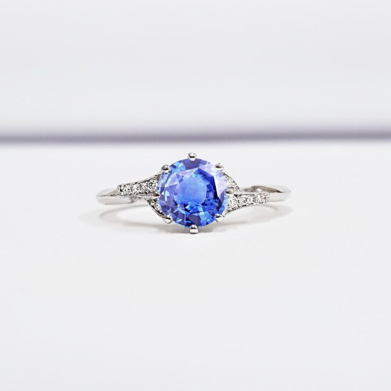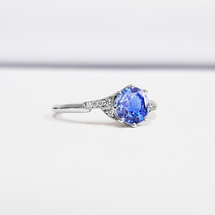 Light blue sapphire and diamond engagement ring handmade in white/rose/yellow gold or platinum antique edwardian inspired mount