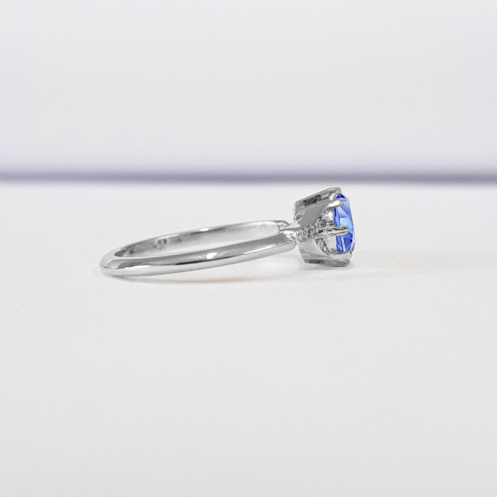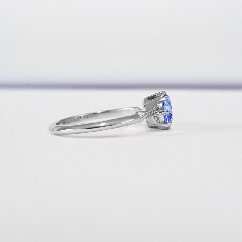 Center lab grown light blue sapphire: 1 carat, AAA quality