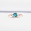 This brand new stunning ring features a central brilliant cut lab grown mint sapphire, that has been claw set with 6 brilliant cut diamonds, in a sleek and elegant low profile mount.