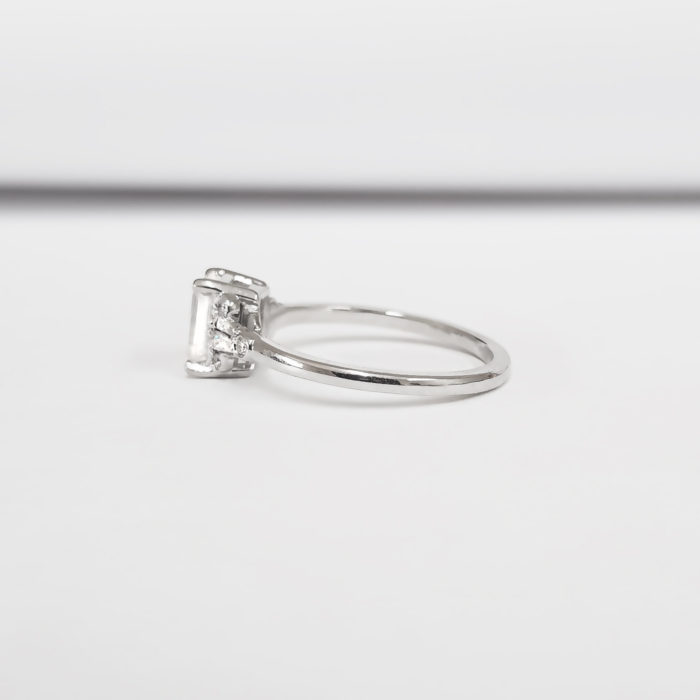Moissanite and diamond emerald cut engagement ring in white/rose/yellow gold or platinum for her handmade ring UK