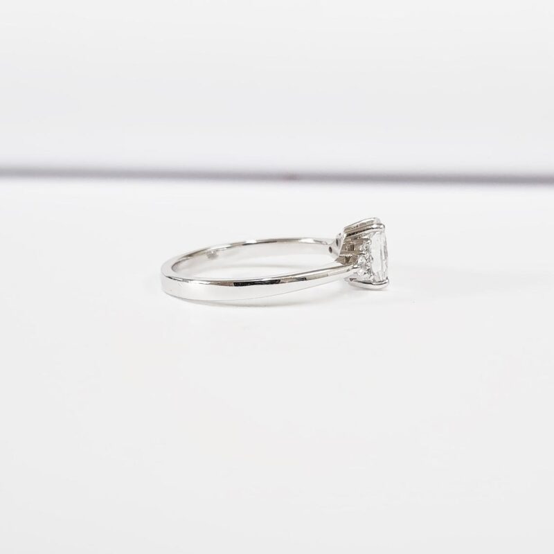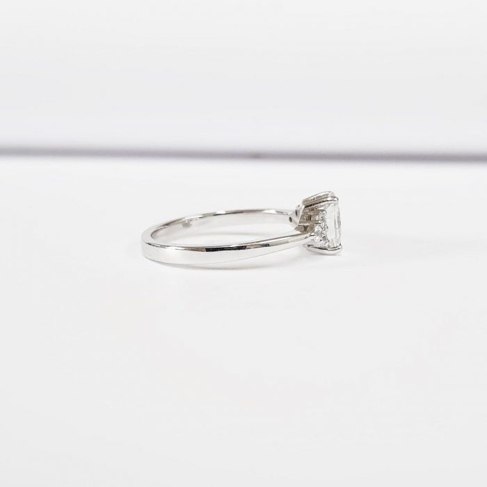 Moissanite: 7 x 5 mm, 1 carat, AAA quality, D/E/F colour, VVS clarity