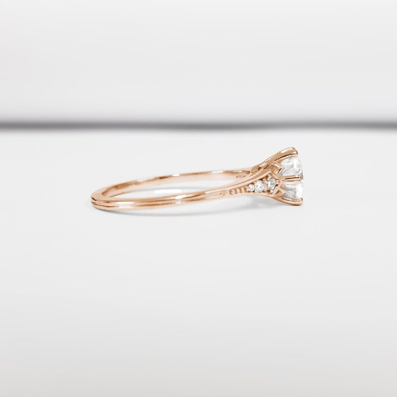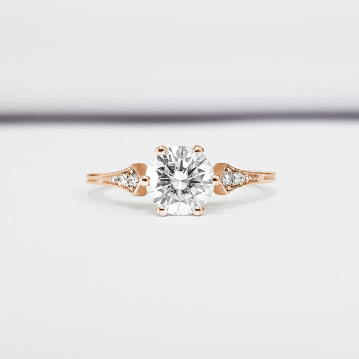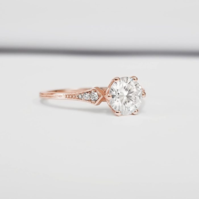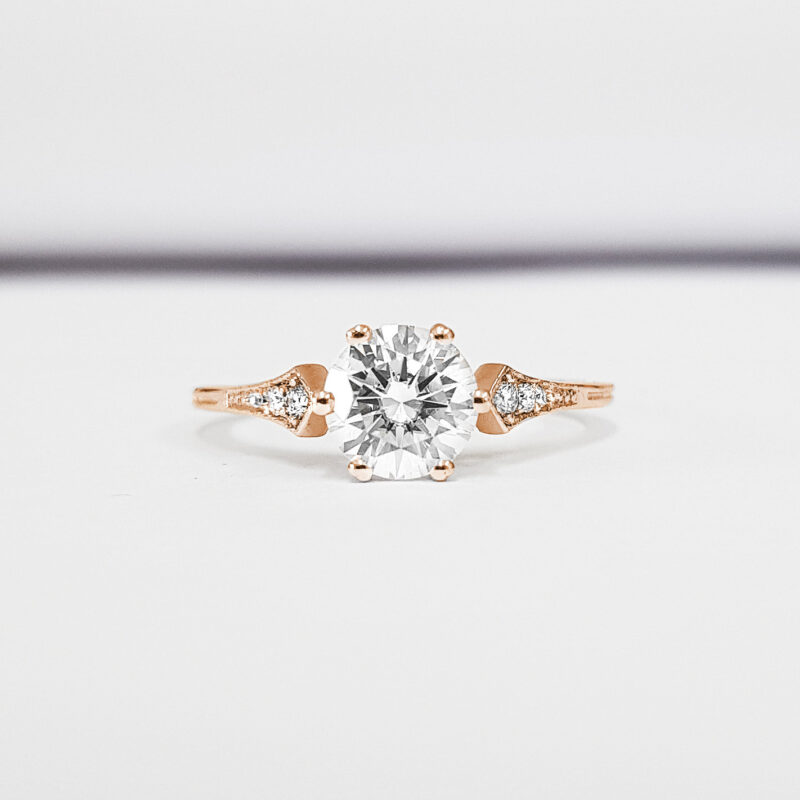 This brand new stunning ring features a central 1 carat brilliant cut moissanite, set in a stunning antique 1920s inspired mount.