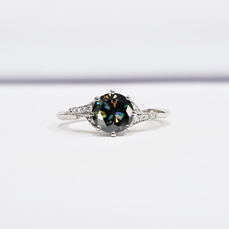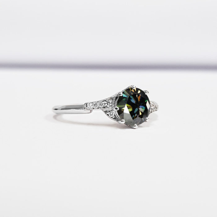 This brand new stunning ring features a central 1 carat moonlight moissanite, set in a stunning antique 1920s inspired mount that has been studded with a further 10 diamonds!