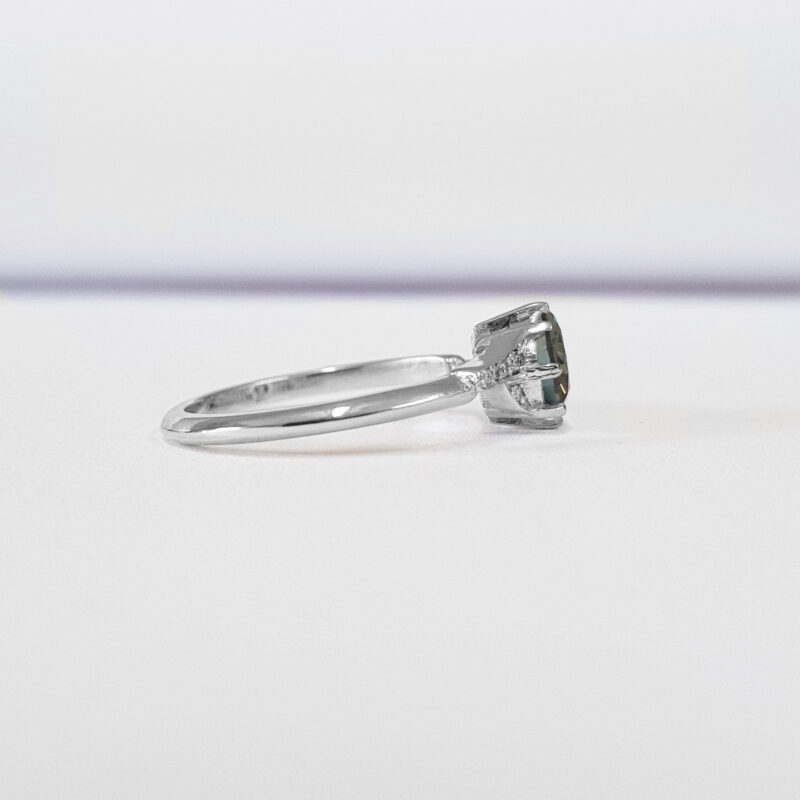 Video of (white moissanite) ring model here: https://www.instagram.com/p/BtQWg5QhdYH/
