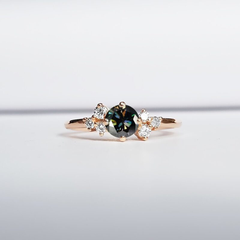 These multicoloured moissanites feature stunning flashes of dark, earthy colours. Reminiscent of the moonlight bouncing off a city skyline at night!